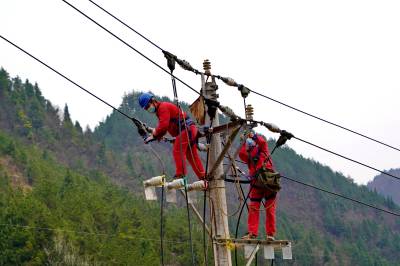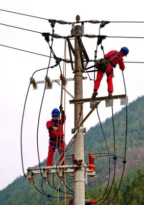 12月20日,在巴东县官渡口镇下马洞村,国网巴东县供电公司官渡口供电所供电员工正在加紧割接10千伏火小线联络线,当天该线路一次性送电成功。该成功的投入运行,实现了35千伏官渡口变电站与火峰变电站供电区域10千伏“手拉手”联网供电。