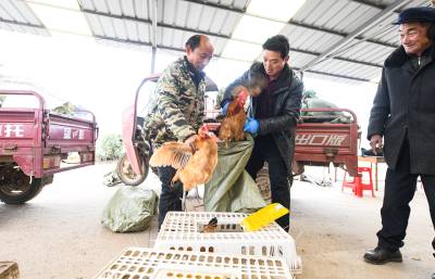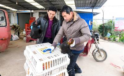 20日,嘉鱼扶贫馆的嘉鱼县富德蔬菜专业合作社负责人王国雄, 以优价收购,官桥镇廖家桥民富绿色生态种养殖合作社马红炎、罗新华等贫困户的散养土鸡215只。