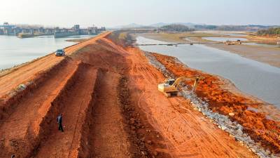 陆水干流重点嘉鱼段防洪治理工程施工正酣