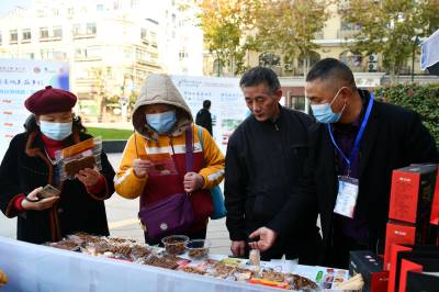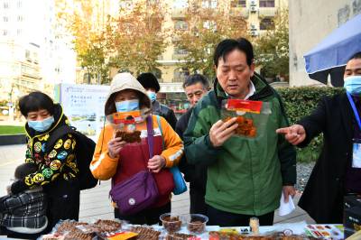 当日,湖北省咸宁市通城县在上海四行仓库广场举行以 “八百壮士故里农产品进上海”为主题的推介会,来自当地的10多家优质农产品生产企业,带来通城“两头乌”腊肉、香肠,黄袍山茶油、三毛姐紫苏酱、有机彩米、有机茶叶等300多种农副产品集中亮相,一场丰富多样、绿色生态的乡土盛宴展现在上海市民面前,吸引了众多消费者前来购买。