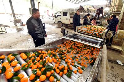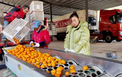 2020年12月20日,湖北省襄阳市南漳县巡检镇峡口邓家岩家庭农场邱仰桥的包装车间洗桔、筛选、包装、上车一派繁忙的景象,将最后两柜柑橘发往东南亚。