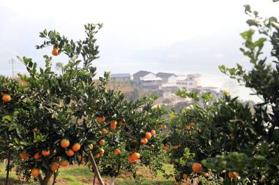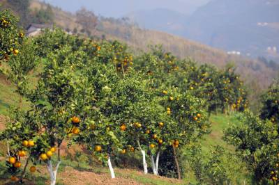 12月21日,湖北省巴东县沿渡河镇罗坪村的花果山柑桔园,漫山遍野的柑桔在阳光照射下晶莹剔透,硕果累累。