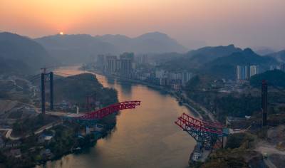 长阳清江特大桥冲刺合龙(客户端采稿)