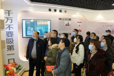 县实验中学校长舒清江引导大家仔细浏览展厅内禁毒历史、禁毒法律法规等,认真观看禁毒教育宣传短片,参与禁毒知识答题,学习禁毒知识。
