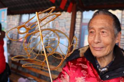 “我的孙子和我一样,也是9岁开始学习画糖画的。”米兆贵对糖画有着特殊的感情,“从我的曾祖父到我的小孙子,咱们一家六代人始终坚持世代传承糖画技艺。”对于前来学艺的徒弟们,米兆贵总是毫无保留、悉心指导。如今,米兆贵已经收了60多个徒弟。“糖画是我国珍贵的非物质文化遗产,在我有生之年,我一定要把糖画发扬光大,世世代代传承下去。”(视界网 张国荣 李重庆 摄)