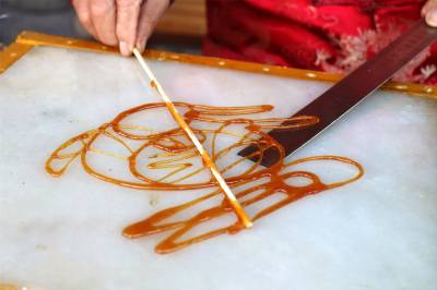 手上功夫要到家,熬糖功夫也是重中之重。一开始,由于掌握不好放水的多少、熬制时间的长短,米兆贵熬出的糖汁又苦又涩,粘度也不能保证作画的流畅。“为了过熬糖这一关,我不知道浪费了多少糖,熬了多少遍。”米兆贵笑道。