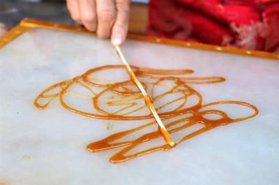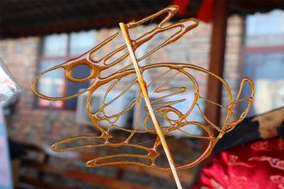 “滴下来的糖浆要比芝麻还小,拉出来的丝比头发还要细,学起来特别难。”米兆贵表示,虽说自己有一定的绘画功底,但画在纸上和用糖画是完全两码事,难点就在于这些“点石成金”的手上功夫。