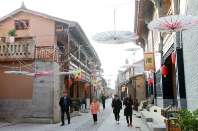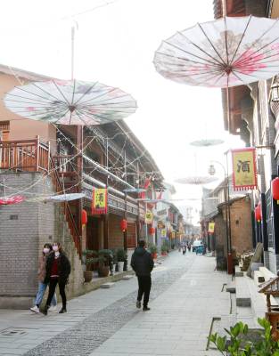 2020年12月27日,游人在镶嵌竹房城镇带上的房县房州古镇军店镇下店子老街游览。该县投资8000多万元,修复始建于唐朝、鼎盛于明清时期的军店镇下店子老街和军马铺老街,完成古民居修复改造200多户,建成重点工程21项,古镇风貌焕然一新。目前,军店镇下店子被评选为“中国传统村落”,入驻古街经营主体16家,当地农民自办餐饮、民宿客栈、制作黄酒、臭豆、手工艺品等特色产业,吸引来自北京、天津、广东等地大量游客观光旅游,成为竹房城镇带具有完整房陵文化历史风貌的第一古镇。