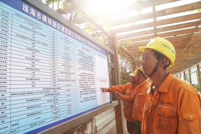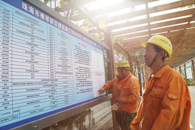 本报珠海讯(通讯员孟庆虎 邱 恒) 12月28日,中铁大桥局珠机城际铁路金海大桥项目部钢结构加工场的农民工在观看维权信息告示牌、工作考勤和工资发放单。“这些信息对我们来说太重要了,以后在工地如遇上问题,就知道该怎么做,不该怎么做了”。来自河南南阳市的农民工王永轩说。