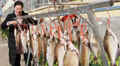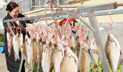 年年有鱼(余)是中国百姓对来年的期盼和向往,所以鱼是新年不可缺少的食品。看,1月2日,湖北省安陆市王义贞镇集镇居民周新姬正在晾晒武昌鱼,为即将到来的2021年农历春节作准备。