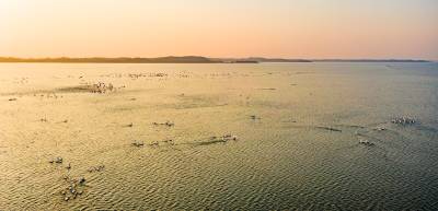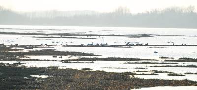 2日,夕阳下记者在嘉鱼渡普水域看到,湖面水波荡漾,一碧万顷成群天鹅、大雁、野鸭、鸬鹚觅食,追逐嬉戏 ,展翅翱翔,这里天鹅的天堂。湖中 、岸边都有执法队员身影。