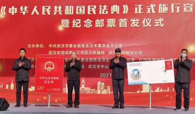 2021年1月1日,武汉市《中华人民共和国民法典》正式施行宣传暨纪念邮票首发式,当日上午10点在汉口中山公园三峡广场举行。