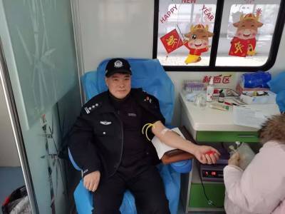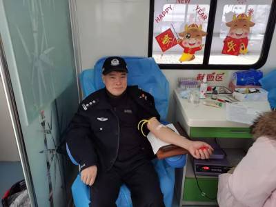 1月1日,汉川市火猴山公园前的献血车上,一名穿着警察制服的男子挽起衣袖静静地坐在椅子上,一根针头扎进他的静脉血管。就这样,400毫升新鲜血液通过一根导管流向储血袋。献血车上电脑显示,他已无偿献血18年25次,献血总量8800毫升,已获全国无偿献血奉献奖金奖。