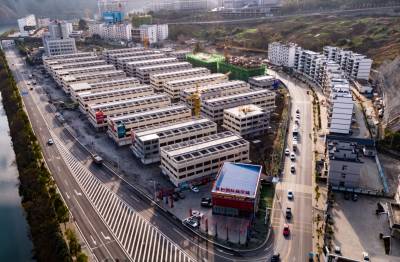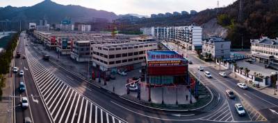 1月5日拍摄的即将竣工的竹山县潘口乡小漩村旺恒国际商贸城。据了解,旺恒国际商贸城占地78亩,总投资3.5亿元,现已完成工程量的95%。该项目包含五金、建材、汽车、摩配、数码电子、家具等多种业态和功能于一体的大型专业市场,可吸纳商户400多家,年销售额5亿元以上。