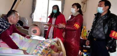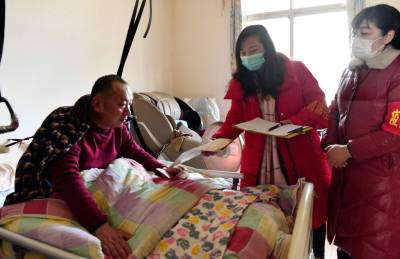 1月18日春节临近,武穴市武穴办事处螺丝旋社区干部和机关下沉党员到中国银行武穴市支行宿舍小区因意外事故造成一级伤残、卧床不能下地的居民戴军家中,送去300元现金和一壶油进行慰问,将近期疫情形势以及如何做好个人、家庭防疫有关知识与之宣传、交流和沟通,并让他将黄冈市确定的“两个非必要”防疫政策转告在福州工作的女儿“尽量就地过节”。视界网冯怡红摄