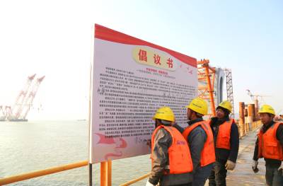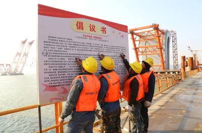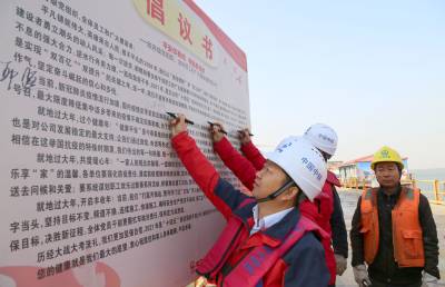 本报珠海讯(通讯员孟庆虎 邱 恒)1月18日,中铁大桥局珠机城际金海大桥栈桥上树着一块倡议书牌子,现场员工纷纷在倡议书上签名,表示积极响应倡议,留在工地过年。“就地过大年,过个健康年,今年是我在这个工地过的第三个春节,工地过年文体活动和生活都很丰富,年味浓,感觉好,我们都非常开心”。项目部员工林建雄说。