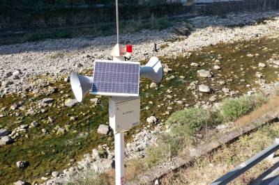 该系统由3套河道水位监测站和12套声光报警站组成。当河道发生山洪时,上游水位站可在第一时间监测到预警水位并自动发出预警信号,经无线通信传至下游各站,报警站发出预警广播和灯光预警,提醒下游的游客和群众避让洪水,为下牢溪下游河段提供防洪预警“新手段”。(视界网 张国荣 李重庆 摄)