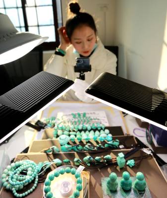 1月18日,竹山绿松石抖音电商直播基地正式投入运营。这是全球绿松石主产区——竹山县引进抖音公司创建的湖北省独此一家、全国第25家珠宝类直播基地,实行“外地+本地、电商+实体、互联网+供应链”的结合方式,形成原石开采,产品设计、实体加工,实体批发,网络销售为一体的良性发展产业链生态圈,实现产业的产销对接和线上线下一体化,对入驻商家进行全方位的服务。项目可以直接带动就业2000人以上,间接带动就业15000人以上,年交易额10亿元以上,带动全县电商直播成交额增长20亿元。442200 竹山县委宣传部