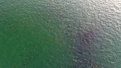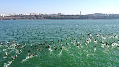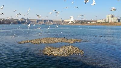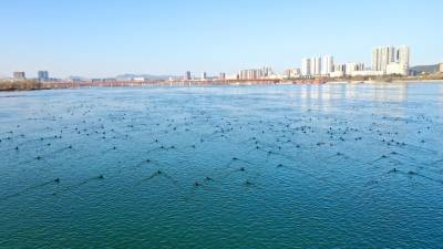 1月18日,南水北调中线核心水源地,数不胜数的飞禽在丹江口大坝坝下水域觅食游弋,吸引着不少摄影爱好者和市民驻足观赏、拍照。