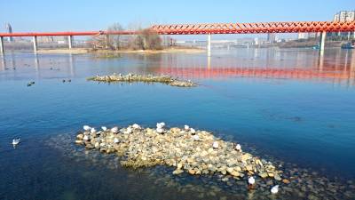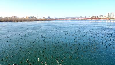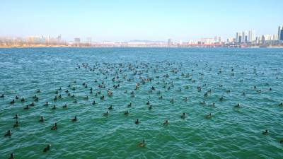 生态更好,这些年到丹江口越冬的鸟类逐年增多。万禽戏水游弋,在汉江水面划出线条道道;千鸟踏浪齐飞,在碧波之上溅起水花朵朵,让冬日的丹江口坝下沧浪洲湿地江边水面呈现勃勃生机。