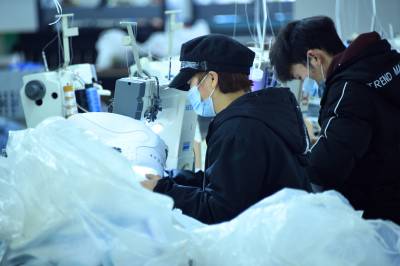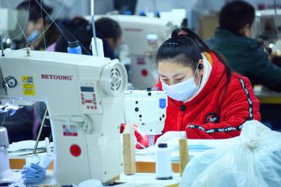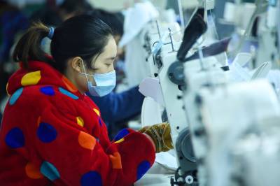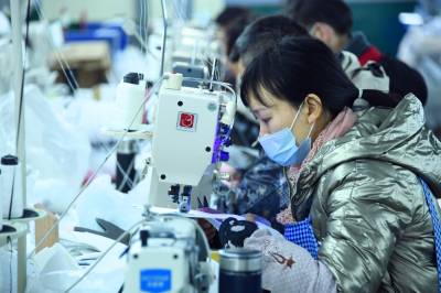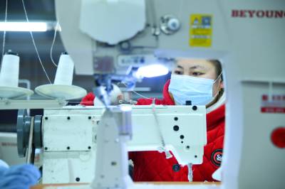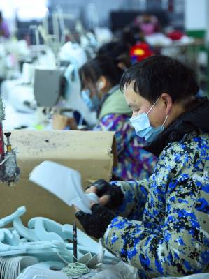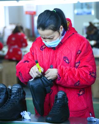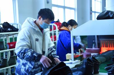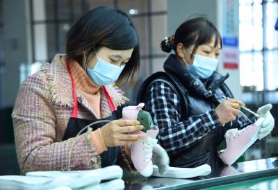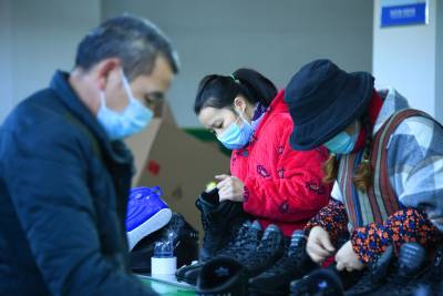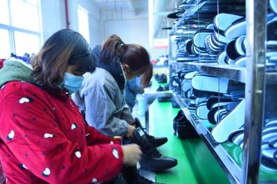 1月19日,务工群众在宣恩县椒园村一家制鞋企业的流水生产线上工作。