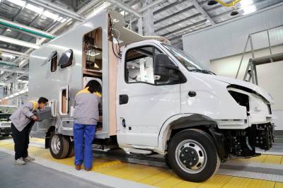 1月18日,在吉神智能房车全系列产品生产基地项目生产线上,工人正在紧张生产。据了解,该项目为 2020 年省重点项目,位于十堰经济技术开发区神鹰工业园内,占地面积 200 亩,主导产品涵盖自行式、公路拖挂式、营地式、增程式新能源等系列房车。项目全部达产后,预计年可实现产能 1万台,实现产值 50 亿元以上,上缴税收 3 亿元,新增就业岗位 300 个。该项目从落地建设到新产品下线仅用10个月时间,开创了整车生产项目建设的十堰新速度,也填补了我市房车制造领域的一项空白。全正摄