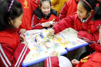 小小百宝箱,筑梦留守儿童绚丽童年。留守孩子们在七色光乒乓球上书写新年祝福、悦玩大富翁游戏棋、放飞相守气球筑梦未来等七色光公益活动中留下缤纷美好的回忆。同时,通过布置“七色光•缤纷年”的七彩灯笼寓意着快乐相守大团圆等寒假家庭作业,收获满满的爱心让留守儿童和爸爸妈妈一起快乐过春节。(视界网 刘东 陈红艳 摄)