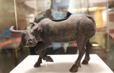 现场将展出弦纹牛首钮铜罍、卧牛钮铜鼎、玉牛、陶牛车、吴牛喘月故事镜等藏品,涉及铜器、陶器、玉器、瓷器等种类。相关负责人介绍,此次展览将向市民展示牛的相关文化,丰富市民的文化生活,也希望大家能从古老的文化根脉中汲取“牛气冲天”的精神力量。