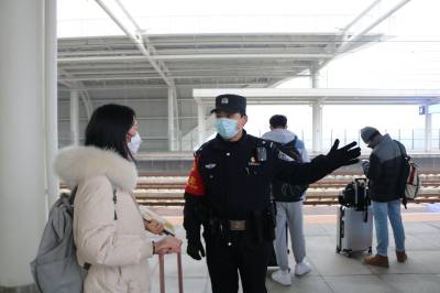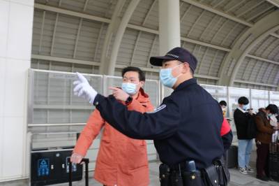 春运、“两会”安保期间,车站客流量猛增,谷城北车站派出所民警组成“党团先锋队”,协助车站做好秩序维护和便民服务工作。图为旅客问路,民警耐心引导。