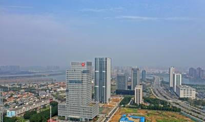 2021年2月23日,航拍金银湖街良品大厦。(湖北日报全媒记者 倪娜 摄)