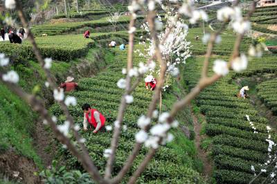 2021年3月3日,连日来,位于三峡工程库区的湖北省宜昌市夷陵区太平溪镇早茶基地茗香四溢,当地茶农抢抓晴好天气采摘早春茶芽,满足春茶市场需求。