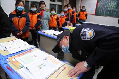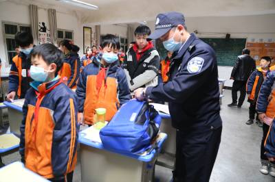 3月3日晚,十堰市郧阳区青曲镇派出所深入辖区中小学校开展“管制刀具及危险品检查”专项整治活动,民警对学生的书包、课桌及寝室角落进行排查,同时对学生进行了法制宣传及安全教育,让学生深刻认识到非法携带管制刀具的危害,并动员学生主动远离管制刀具,积极举报非法携带和使用管制刀具的行为。此次清查活动,未发现学生携带管制刀具等危险物品进入校园。图为3月3日晚,十堰市郧阳区青曲镇派出所民警在该镇中心小学排查违禁物品。