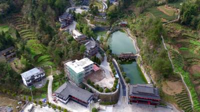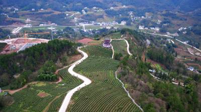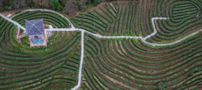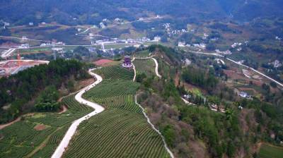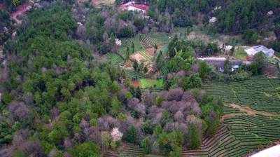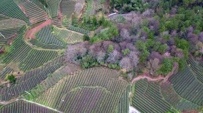 2021年3月3日,鸟瞰恩施市白杨坪镇洞下槽村,茶园如织,山环水绕,山花浪漫,村景如画。洞下槽村是恩施灯戏的发源之地,至今有保护完好的灯戏演出堂(崔家屋场),有专门的灯戏演出队伍,灯戏传人孟永香被文化部授予“国家级非物质文化遗产项目代表性传承人”称号。 洞下槽村海拔悬殊,立体气候明显,阳光充足,雨量充沛,生态环境良好,负氧离子浓度高。洞下槽还是恩施茶叶品牌“恩施玉露”的传承地之一,8000余亩良种茶园既是茶农的支柱产业,也是休闲旅游观光的文化名片。在茶园相对集中居高处,有一览众山小的求雨台,寓意“恩施玉露”需要阳光雨露,提升品质。张洪刚摄