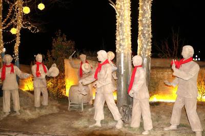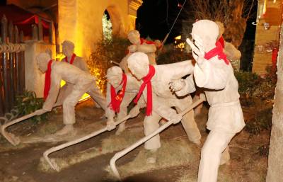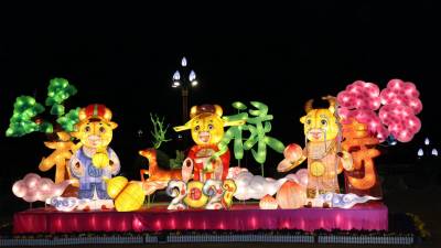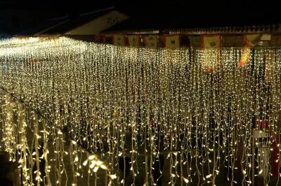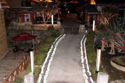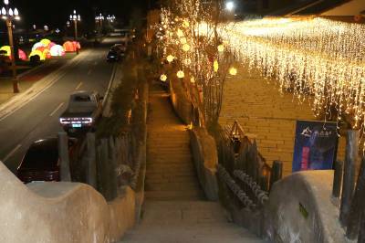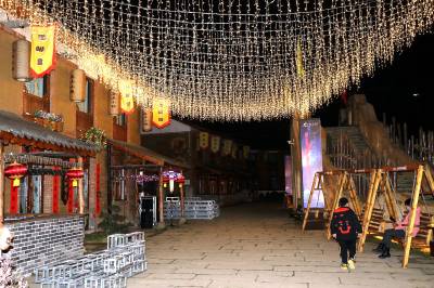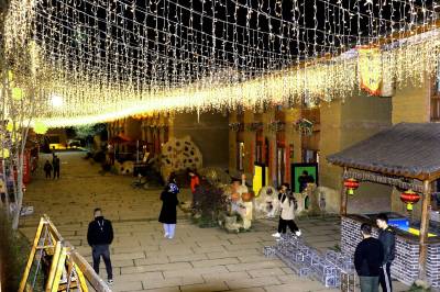 3月4日晚,竹溪县桃花岛景区内的夯土小镇,流光溢彩,如梦如幻。