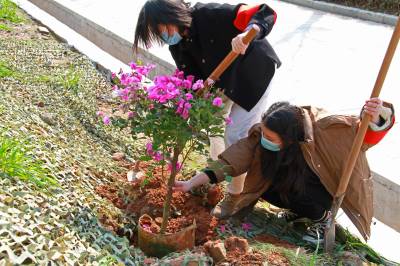 湖北十堰:书香满园春意浓 樱满枝头花正好 校园为民众开放赏花
