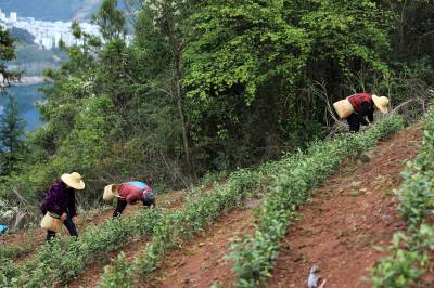 3月7日,巴东县沿渡河镇神农溪畔的野马洞村,绿意盎然的茶园里,茶农在一排排盘旋而上的茶树丛中抢摘春茶,忙碌的身影犹如跳动的音符,演奏出一支支动人的采茶舞曲。