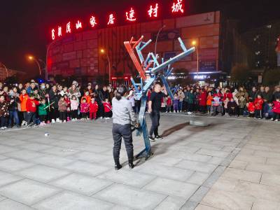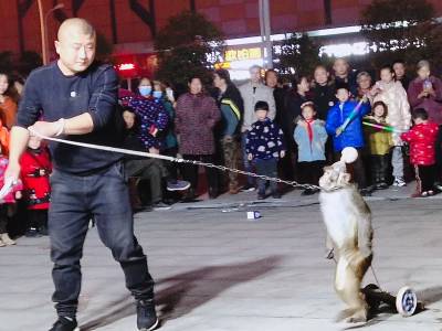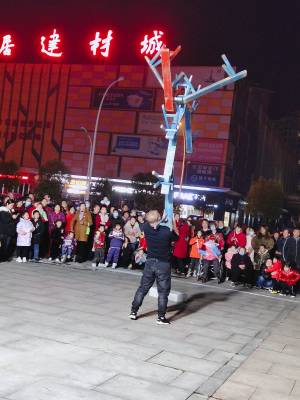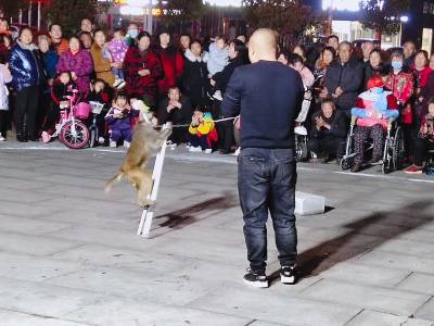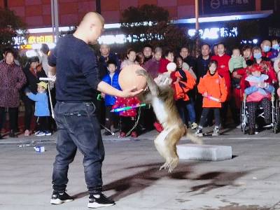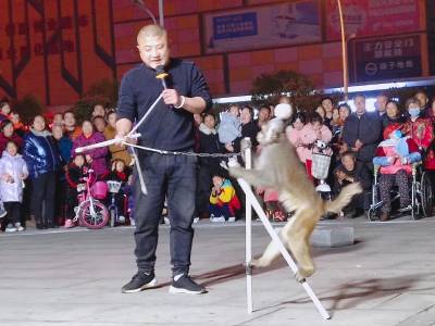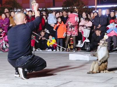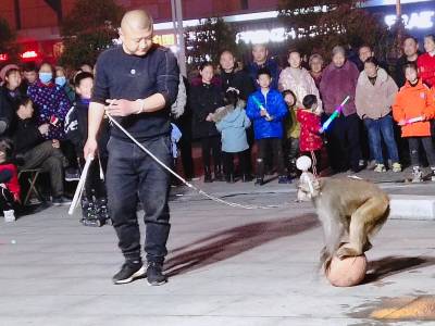 3月11日晚,一对河南南阳夫妻组成的杂技团,在随州市随县厉山镇建材广场临时搭起表演舞台,以猴戏为媒吸引数百市民看戏,大肆渲染传统江湖“耍把戏卖艺”气氛。人气越聚越旺,现场掌声雷动,高潮迭起,待市民意犹未尽时,表演节目暂停,趁机穿插兜售小商品——萤火棒、发光眼镜、皮带、插排等。经过两个多小时表演,夫妻俩把车上携带的商品销售一空,中间不时穿插杂技表演节目,吊观众胃口,这种以戏为主轴,贯穿销售商品的营销业态,既被群众所喜爱接受,又增加了经济收入。