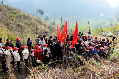 在东峰村栽树现场,笔者看到,该村不仅组织的栽树劳力多,效率高,而且还首先举行了3月份的支部主题党日活动。活动结束,党员干部一马当先,带头拿起工具,扛起树苗,做出示范,使该村当天的植树活动热火朝天,别具特色,成效显著。