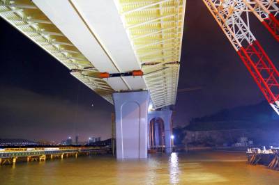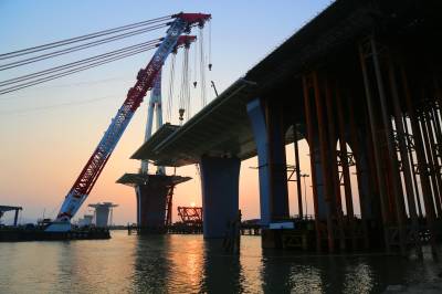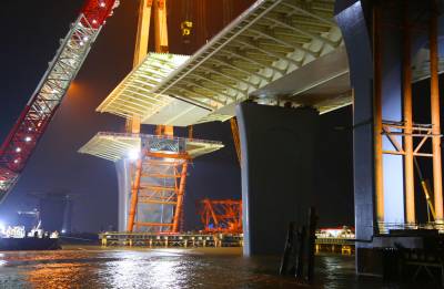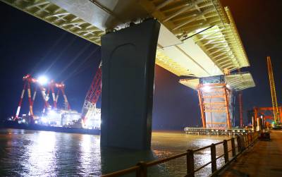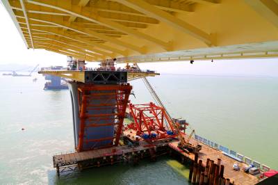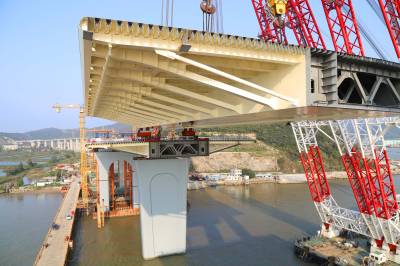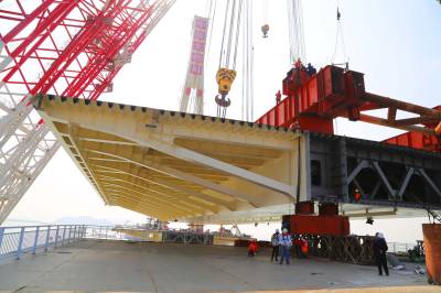 珠海金海大桥首个边跨钢梁合龙