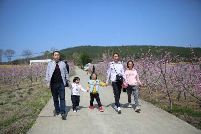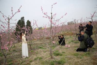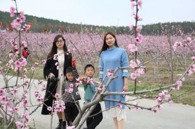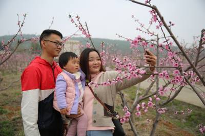 在桃树基地,有的三五成群漫步嬉戏于花海,有的拿出手机自拍或直播、还有大量摄影爱好者手持“长枪短炮”定格“桃花依旧笑春风”。桃花节在精彩的文艺演出中拉开序幕、期间还穿插了有奖趣味问答,抖音直播大赛等系列活动。看大戏,赏美景,市民们沉醉于诗情画意般的春色之中。