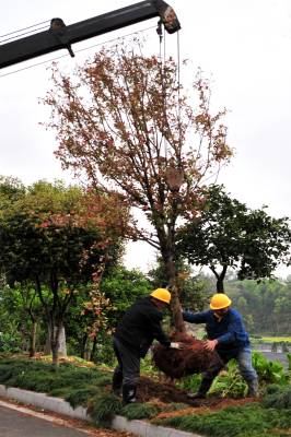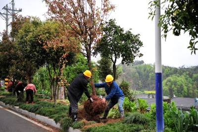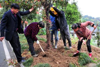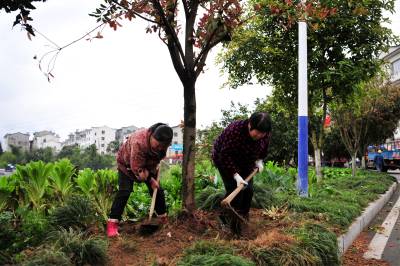 2021年3月17日,宜昌市夷陵区太平溪镇许家冲村村民在长江岸边的道路旁补绿植树。近年来,宜昌大力实施绿满荆楚、精准灭荒、全域生态复绿、长江两岸造林等专项造林绿化工程,复绿长江干支流岸线293.6公里,完成全域生态复绿5.27万亩,全市林业用地达到153.6万公顷,森林蓄积量6977万立方米,森林覆盖率65.98%,位居全省前列。