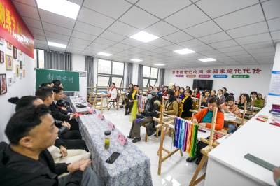 湖北汉绣协会会长陈慧老师,刺绣大师黄红英老师、宋惠芳老师一行亲临现场指导,县文化和旅游局、县文联、县文化馆、县非遗中心、县老年大学以及东街社区相关负责人参加开班典礼。省刺绣大师现场传授平針,斜平针,滚针,回针,祕针,锁针等各种针法。