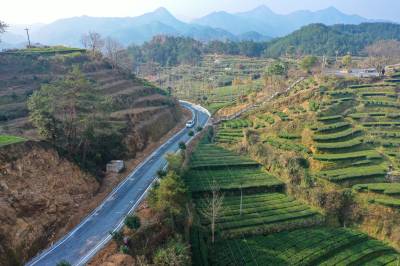 初春,漫步在“大别山茶叶谷”中心的烂柴河村山水茶园画廊中,随处可见焕然一新的景象:村庄整洁,河水清澈,村民安居乐业,满眼茶叶青翠欲滴。一条环线总里程11.617公里,起点三门河村,途经河南畈村、宋家榜村、金鸡岭村、烂柴河村、腰磨畈村,止于饶家湾村,是一条具有旅游特色的“四好”农村路,贯穿村内的“双河堰”、茶园、桃花源、观景台、交通驿站主要景点,所到之处都令人流连忘返。