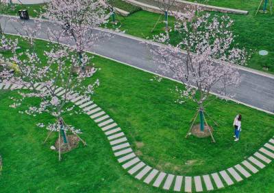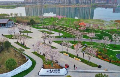 2021年3月13日,新开园不久的武汉黄塘湖公园活力水岸区内樱花绽放,吸引游客前来游玩赏花。据介绍,黄塘湖公园位于武汉市东西湖区金银潭大道的南北两侧,公园环黄塘湖而建,环湖分为活力水岸、欢乐海洋及水韵长堤三片区域,属于湖泊公园,项目规划总用地(不包括水域)面积99.32公顷。首个建成区位于活力水岸片区,占地约20万平方米,地处地铁2号线宏图大道站与常青城站之间。首个开放区内植物多达200种,樱花、海棠、乌桕等乔灌木超过1400株。公园各处,西洋杜鹃、萼距花、海棠、荷花等花卉按季节绽放,四季有花赏,将成为武汉新晋的市民拍照打卡地。(湖北日报全媒记者 倪娜 摄)
