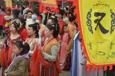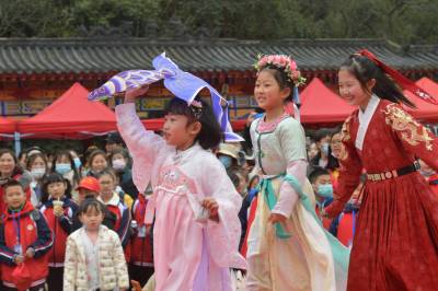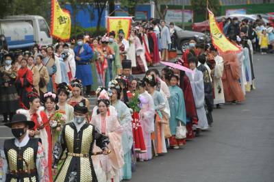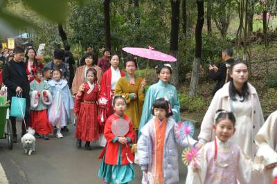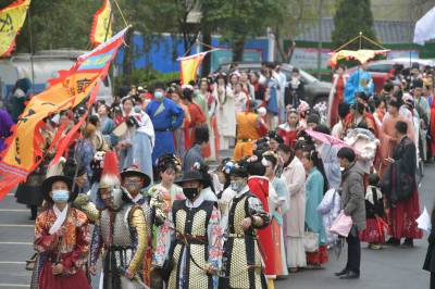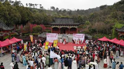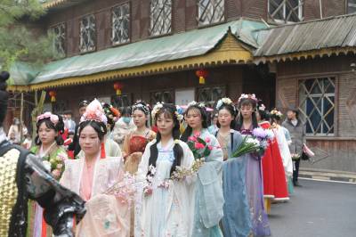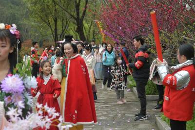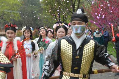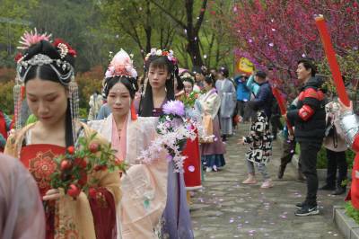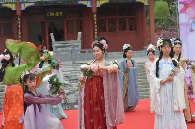 3月20日至31日,第五黄家湾第五届花朝节拍摄的簪花游园活动,方阵巡游、十二花神献祥瑞、祭花神、汉服雅集、簪花游园等10多场活动再现花朝节传统民俗文化之美。