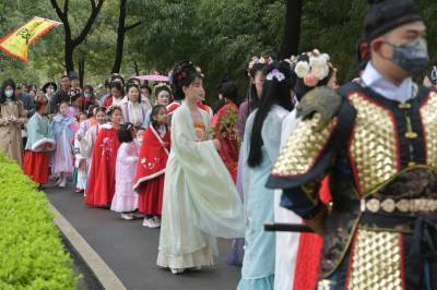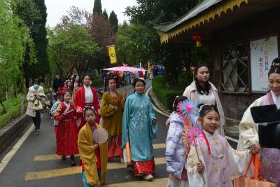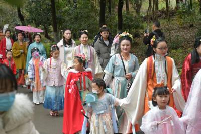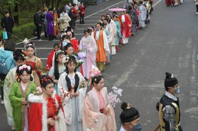 300多位汉服爱好者身着汉服,在黄家湾举行了一场传统的“花神祭”,号召人们莫负春光、爱花护花,展现了传统文化的服仪之美。