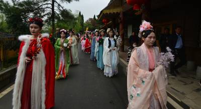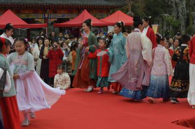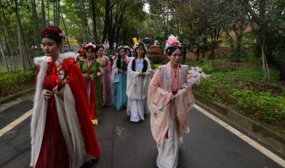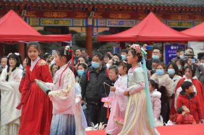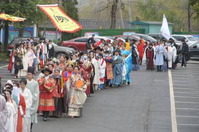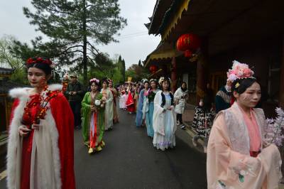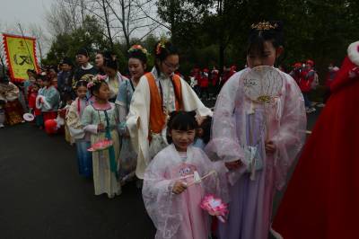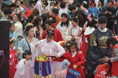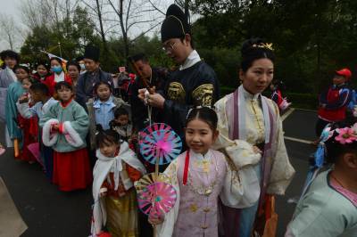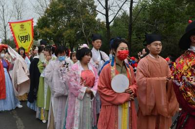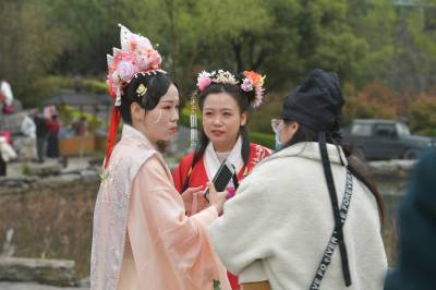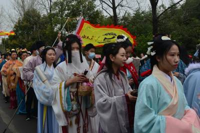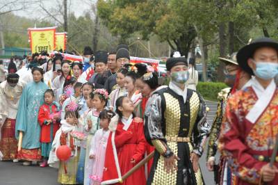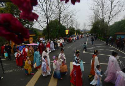 这是3月20日在湖北襄阳第五黄家湾第五届花朝节拍摄的簪花游园活动,黄家湾是诸葛亮夫人黄月英的故里。