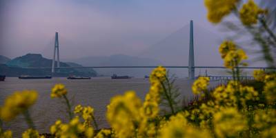 20日,摄影师在黄冈武穴看到,在油菜花的映衬下即将通车的武穴长江大桥宛如一条巨龙横跨在武穴--阳新的江面上。据了解,通车后,武穴到江西九江和到黄石市阳新县都不超过5分钟车程。视界网冯怡红摄