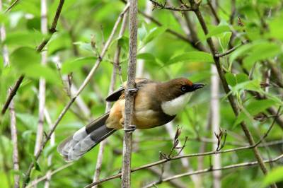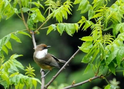 拉丁学名Garrulax albogularis 体长26~30厘米,体重90~150克。前额或整个头顶棕栗色,其余上体橄榄褐色。颏、喉白色,胸具橄榄褐色横带,腹辉棕色或棕白色,为留鸟。 栖息于神农架海拔1500~3000米的森林中,以昆虫为食。繁殖期5~7月,每窝产卵多为3~4枚。