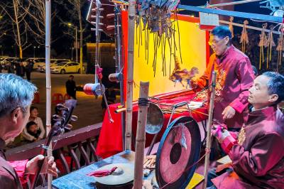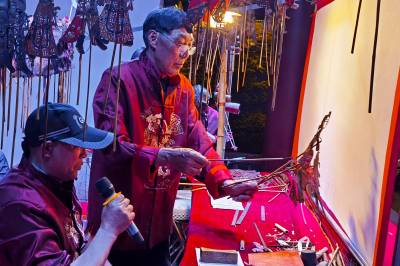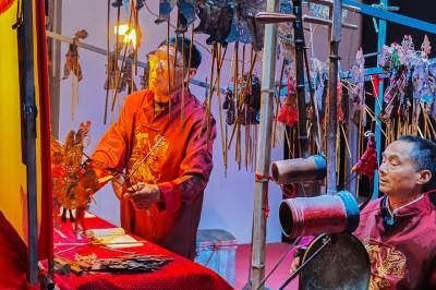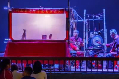 3月29日,湖北省竹山县堵河皮影戏演出分队到该县潘口乡上庸茶城小区开展非遗产下乡巡演活动。该县竹坪乡的陈中祥、李德远、周承华,周承志四位民间艺人表演的竹山高腔皮影戏唱腔浑厚、鼓点分明、皮影在老艺人手里灵动传神,一声声高腔浑厚悠远,韵味十足。经典古戏《三代四状元》《百忍堂》和融入现代元素新编曲目《精准扶贫》《十颗星》的表演引来台下观众阵阵掌声。